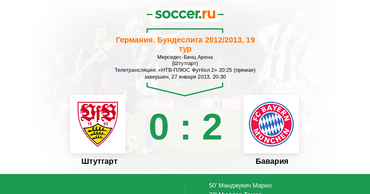 Протокол матча Штутгарт против Бавария