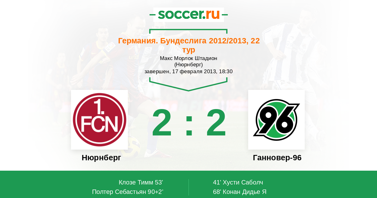 Протокол матча Нюрнберг против Ганновер-96