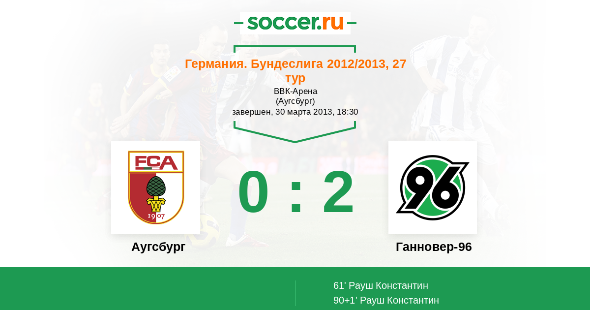 Протокол матча Аугсбург против Ганновер-96