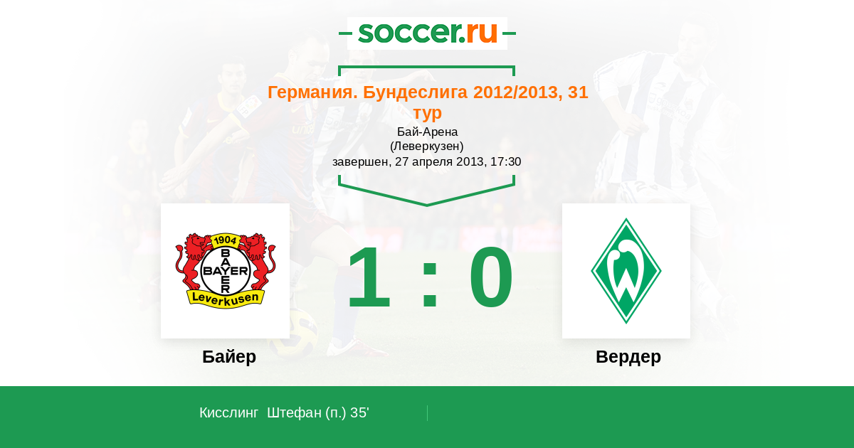 Протокол матча Байер против Вердер