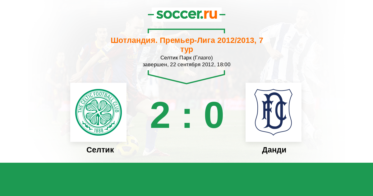 Шотландия. Премьер-Лига 24.02.2013 Селтик Логотип футбольный клуб Селтик (Глазго) 5:0 Логотип футбольный клуб Данди Данди