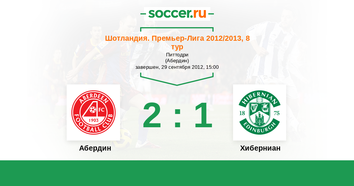 Шотландия. Премьер-Лига 24.11.2012 Хиберниан Логотип футбольный клуб Хиберниан (Эдинбург) 0:1 Логотип футбольный клуб Абердин Абердин