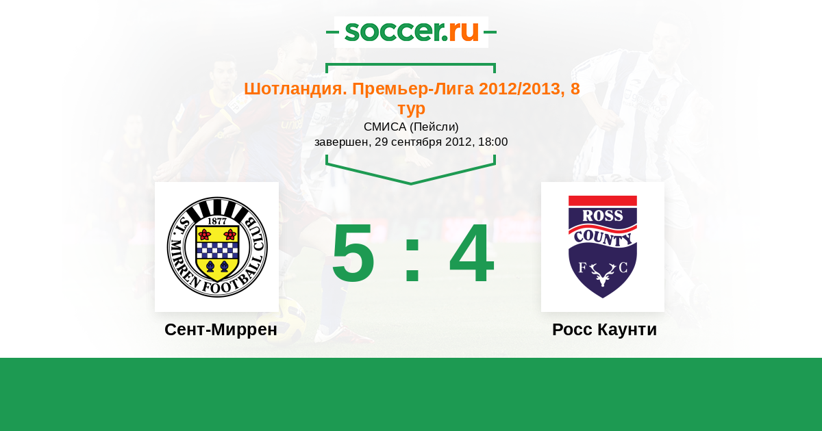 Шотландия. Премьер-Лига 19.01.2013 Сент-Миррен Логотип футбольный клуб Сент-Миррен (Пейсли) 1:4 Логотип футбольный клуб Росс Каунти (Дингволл) Росс Каунти