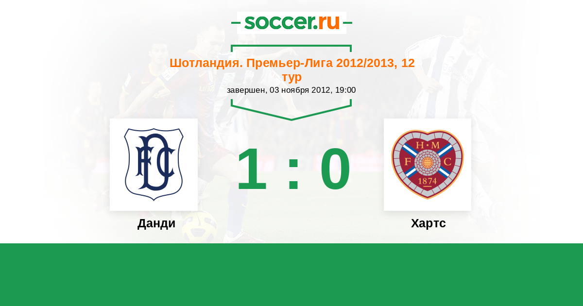 Шотландия. Премьер-Лига 02.09.2012 Хартс Логотип футбольный клуб Хартс (Эдинбург) 0:1 Логотип футбольный клуб Данди Данди