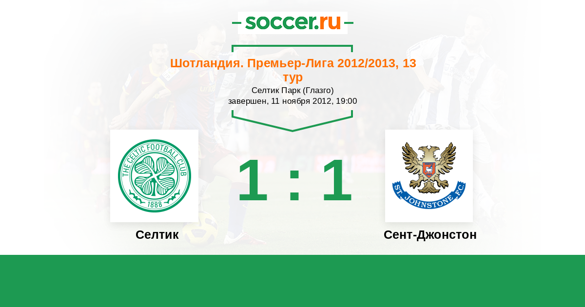 Шотландия. Премьер-Лига 19.02.2013 Сент-Джонстон Логотип футбольный клуб Сент-Джонстон (Перт) 1:1 Логотип футбольный клуб Селтик (Глазго) Селтик