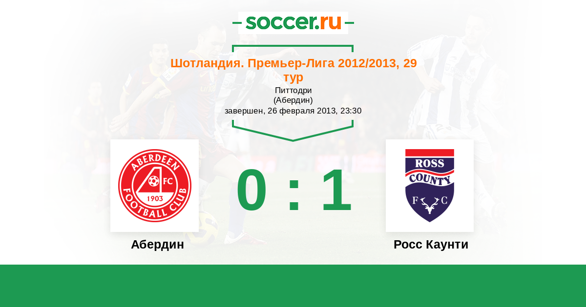 Шотландия. Премьер-Лига 03.11.2012 Росс Каунти Логотип футбольный клуб Росс Каунти (Дингволл) 2:1 Логотип футбольный клуб Абердин Абердин