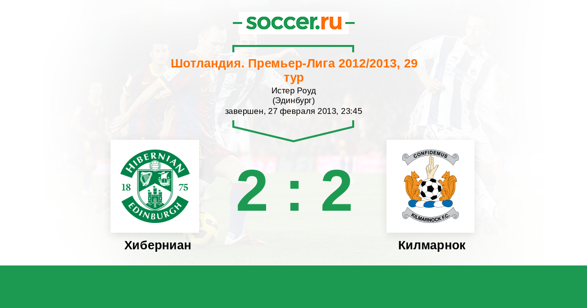 Шотландия. Премьер-Лига 23.12.2012 Килмарнок Логотип футбольный клуб Килмарнок 1:1 Логотип футбольный клуб Хиберниан (Эдинбург) Хиберниан