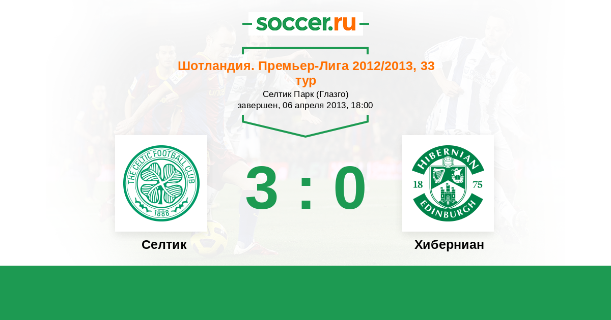 Шотландия. Премьер-Лига 06.04.2011 Селтик Логотип футбольный клуб Селтик (Глазго) 3:1 Логотип футбольный клуб Хиберниан (Эдинбург) Хиберниан