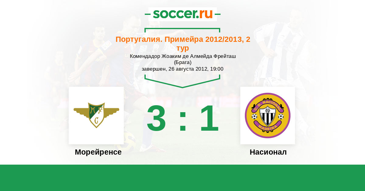 Португалия. Примейра 03.02.2013 Насионал Логотип футбольный клуб Насионал (Фуншал) 1:2 Логотип футбольный клуб Морейренcе (Морейра-де-Конегуш) Морейренcе