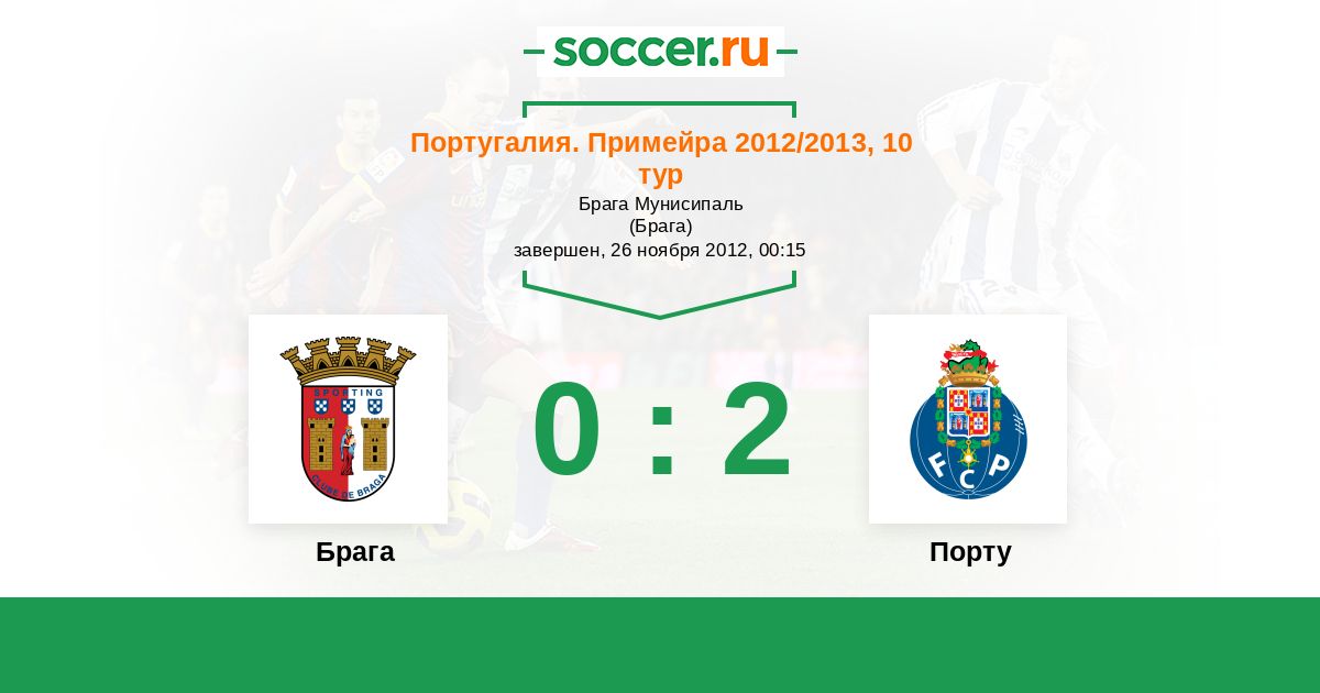 Португалия. Примейра 13.02.2011 Брага Логотип футбольный клуб Брага 0:2 Логотип футбольный клуб Порту Порту