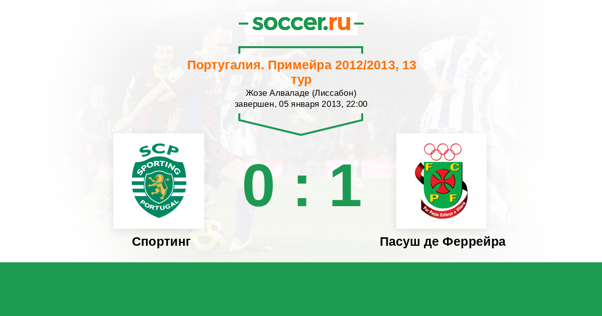 Португалия. Примейра 05.05.2013 Пасуш де Феррейра Логотип футбольный клуб Пасуш де Феррейра 1:0 Логотип футбольный клуб Спортинг (Лиссабон) Спортинг