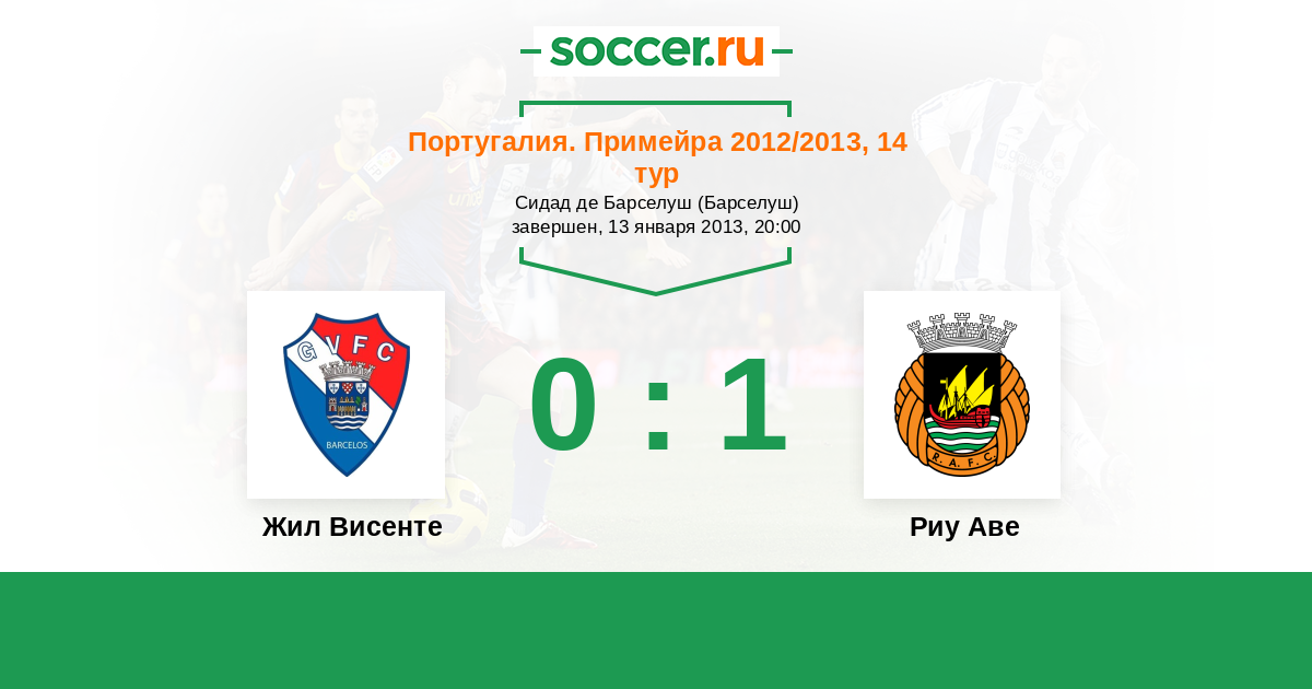 Португалия. Примейра 26.10.2013 Риу Аве Логотип футбольный клуб Риу Аве (Вила-ду-Конди) 0:1 Логотип футбольный клуб Жил Висенте (Барселуш) Жил Висенте