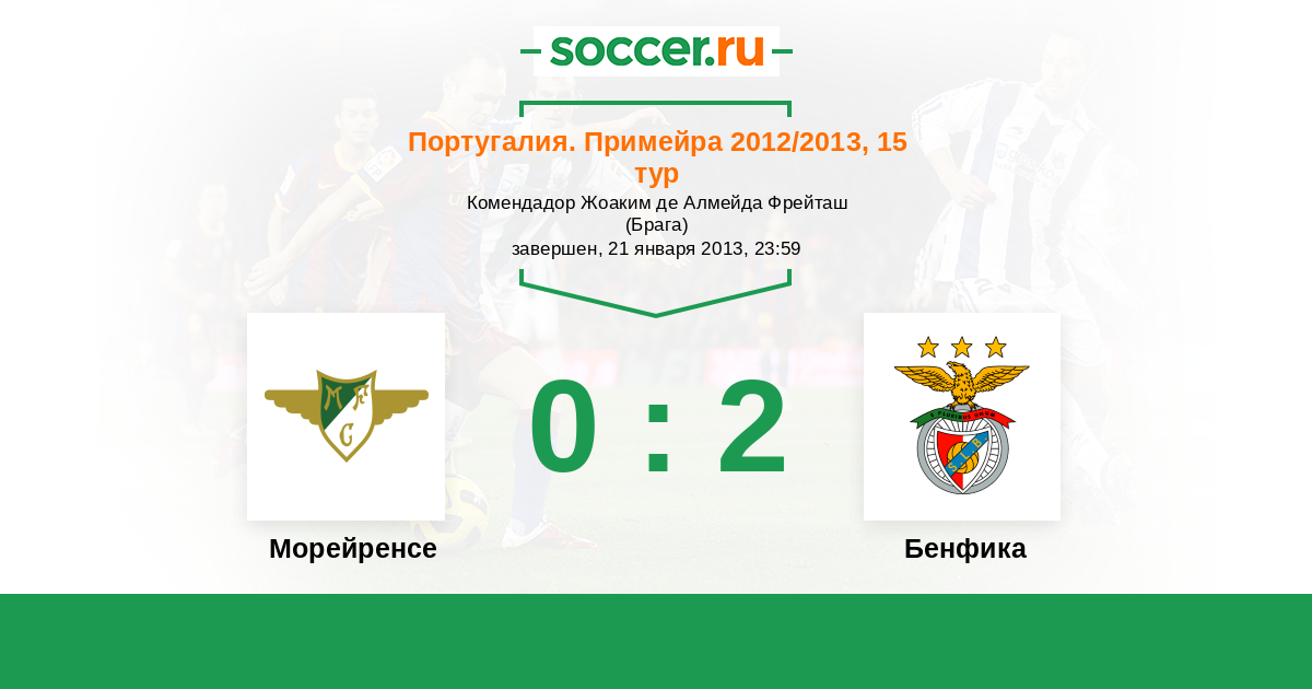 Португалия. Кубок 16.11.2012 Морейренcе Логотип футбольный клуб Морейренcе (Морейра-де-Конегуш) 0:2 Логотип футбольный клуб Бенфика (Лиссабон) Бенфика