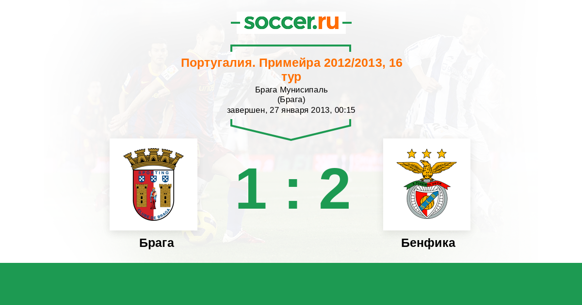 Португалия. Примейра 01.04.2012 Бенфика Логотип футбольный клуб Бенфика (Лиссабон) 2:1 Логотип футбольный клуб Брага Брага