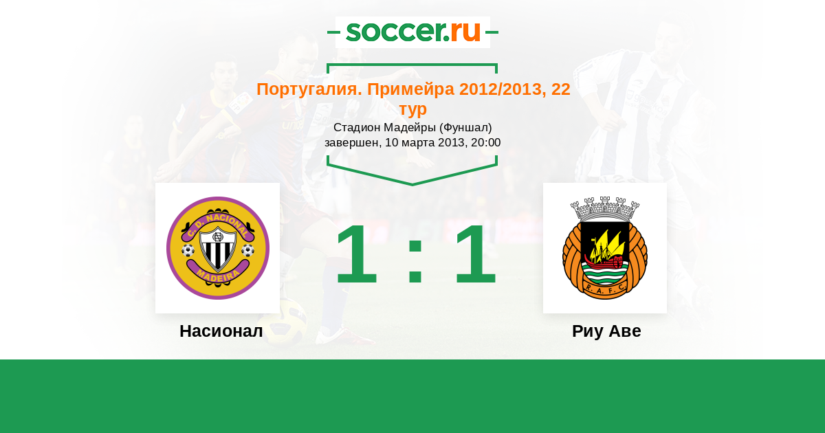 Португалия. Примейра 01.04.2012 Насионал Логотип футбольный клуб Насионал (Фуншал) 2:1 Логотип футбольный клуб Риу Аве (Вила-ду-Конди) Риу Аве