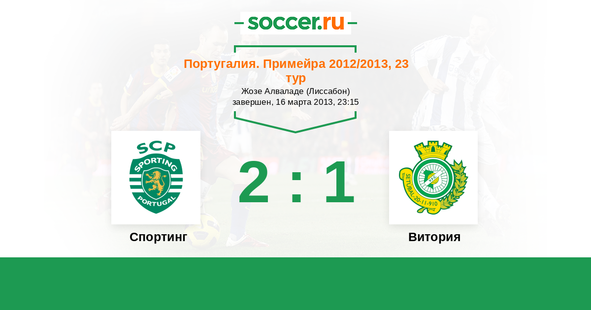 Португалия. Примейра 05.11.2012 Витория Логотип футбольный клуб Витория (Сетубал) 2:1 Логотип футбольный клуб Спортинг (Лиссабон) Спортинг