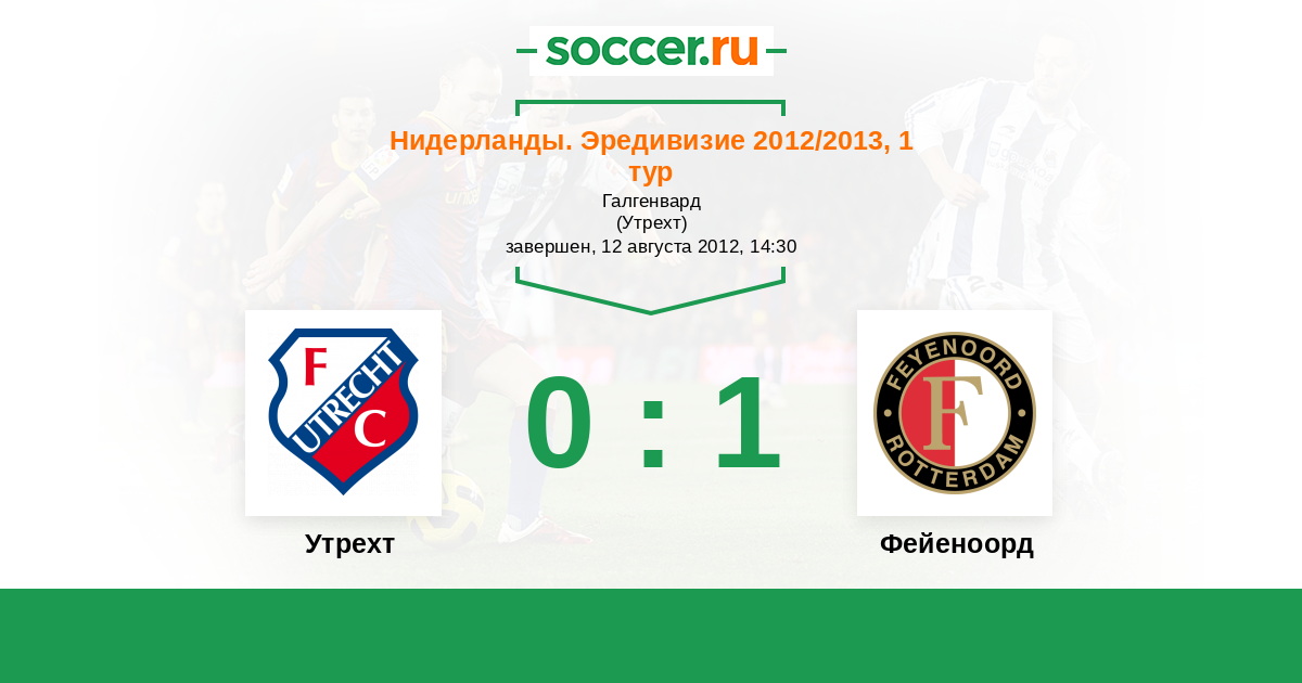 Нидерланды. Эредивизи 24.08.2014 Фейеноорд Логотип футбольный клуб Фейеноорд (Роттердам) 1:2 Логотип футбольный клуб Утрехт Утрехт