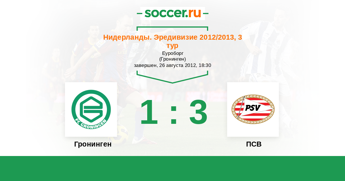 Нидерланды. Эредивизи 27.04.2013 ПСВ Логотип футбольный клуб ПСВ (Эйндховен) 5:2 Логотип футбольный клуб Гронинген Гронинген
