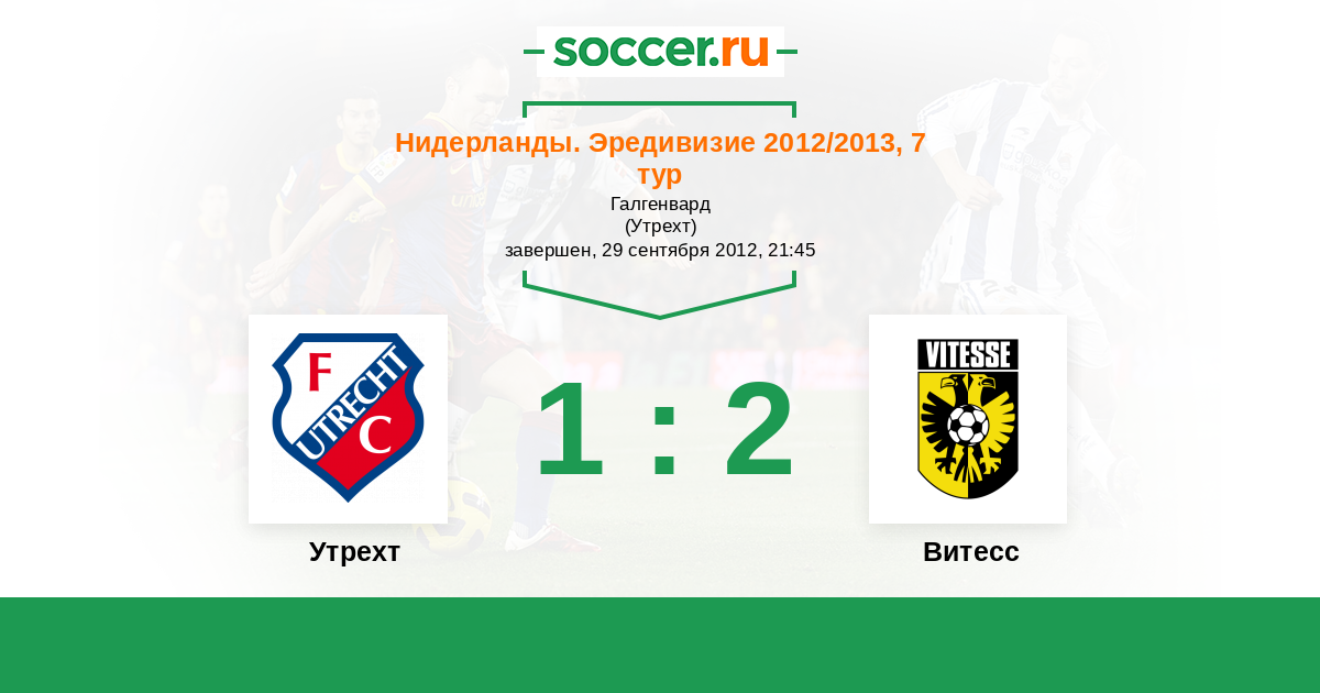 Нидерланды. Эредивизи 01.03.2013 Витесс Логотип футбольный клуб Витесс (Арнем) 2:0 Логотип футбольный клуб Утрехт Утрехт