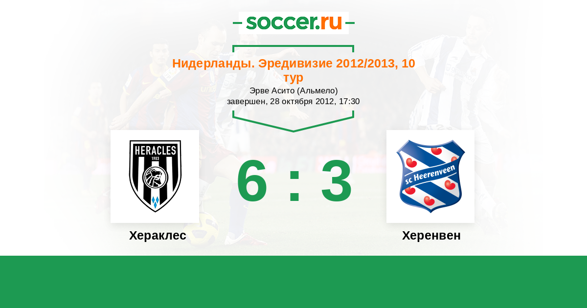 Нидерланды. Эредивизи 06.11.2010 Херенвен Логотип футбольный клуб Херенвен 3:2 Логотип футбольный клуб Хераклес (Алмело) Хераклес