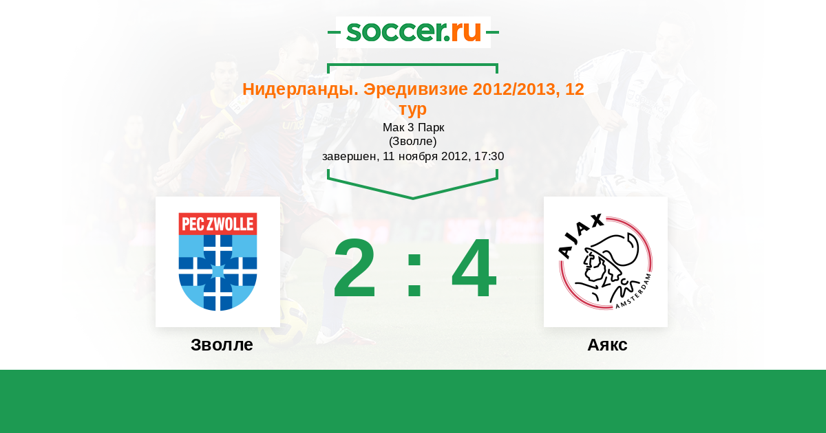 Нидерланды. Эредивизи 10.03.2013 Аякс Логотип футбольный клуб Аякс (Амстердам) 3:0 Логотип футбольный клуб Зволле Зволле