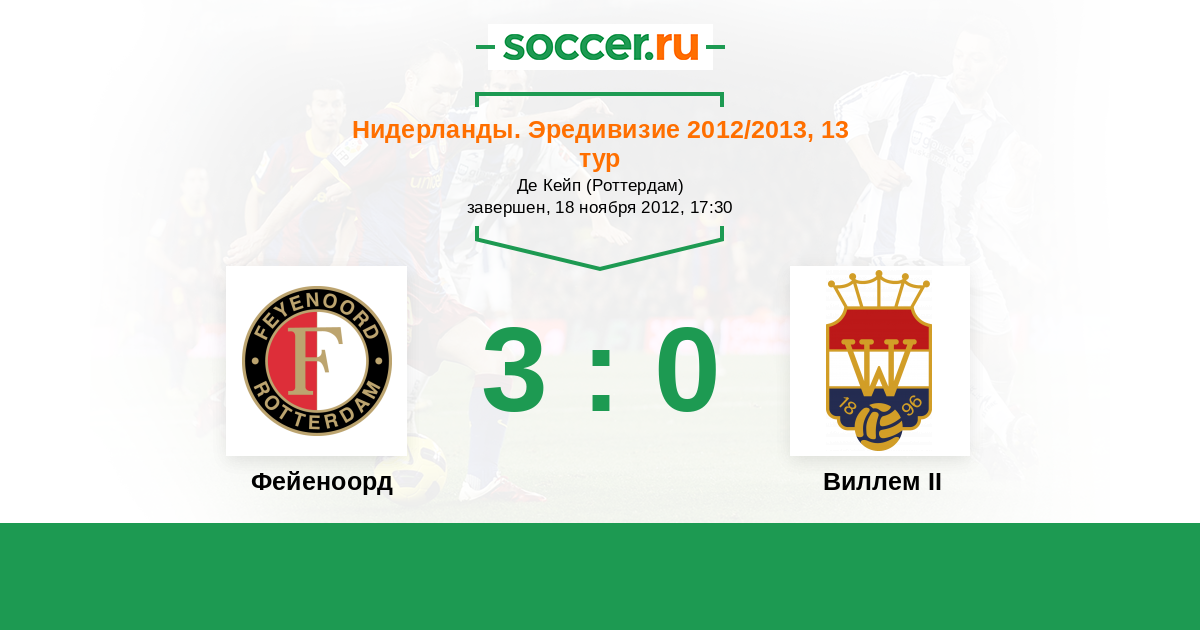 Нидерланды. Эредивизи 03.02.2013 Виллем II Логотип футбольный клуб Виллем II (Тилбург) 1:3 Логотип футбольный клуб Фейеноорд (Роттердам) Фейеноорд