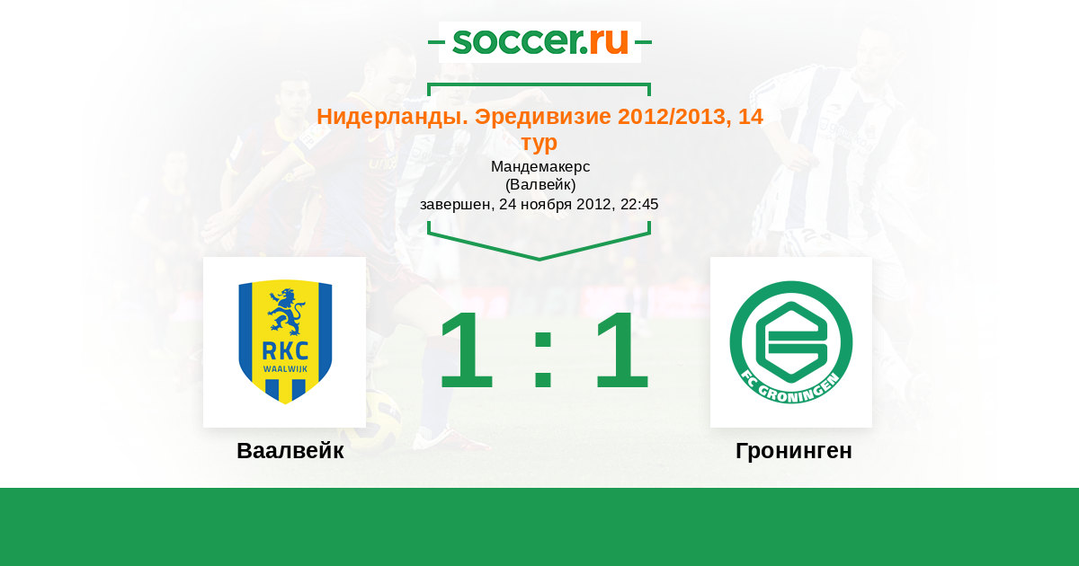Нидерланды. Эредивизи 05.11.2011 Ваалвейк Логотип футбольный клуб Ваалвейк (Валвейк) 1:1 Логотип футбольный клуб Гронинген Гронинген
