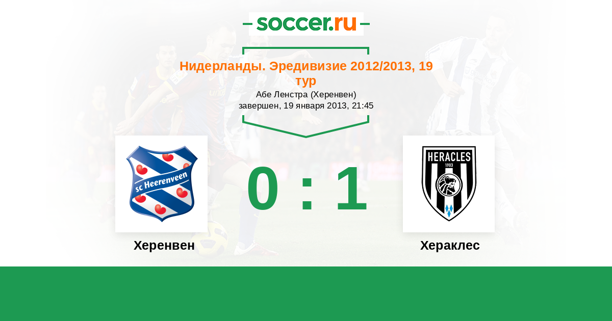 Нидерланды. Эредивизи 28.10.2012 Хераклес Логотип футбольный клуб Хераклес (Алмело) 6:3 Логотип футбольный клуб Херенвен Херенвен