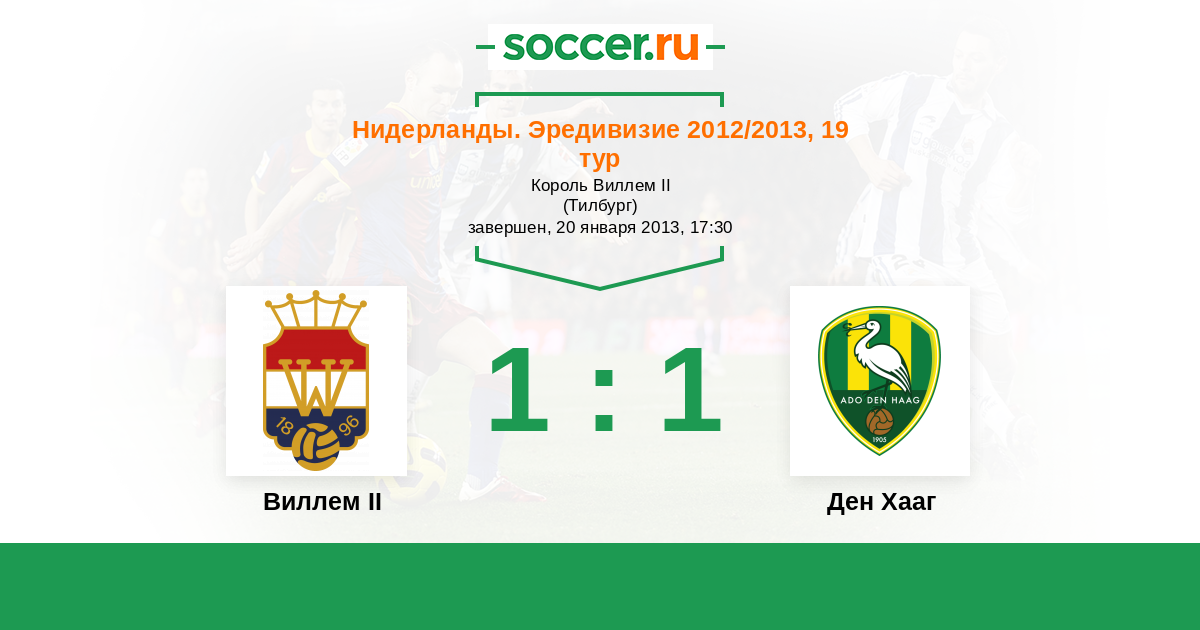 Нидерланды. Эредивизи 27.10.2012 Ден Хааг Логотип футбольный клуб Ден Хааг (Гаага) 2:0 Логотип футбольный клуб Виллем II (Тилбург) Виллем II