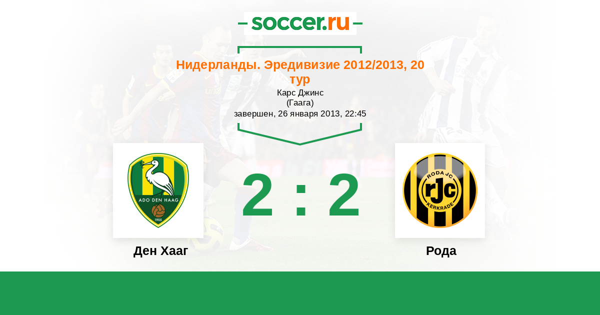 Нидерланды. Эредивизи 02.11.2012 Рода Логотип футбольный клуб Рода (Керкраде) 0:0 Логотип футбольный клуб Ден Хааг (Гаага) Ден Хааг