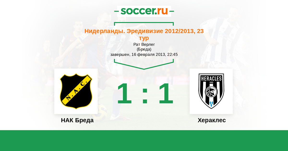 Нидерланды. Эредивизи 16.09.2012 Хераклес Логотип футбольный клуб Хераклес (Алмело) 2:1 Логотип футбольный клуб НАК Бреда НАК Бреда