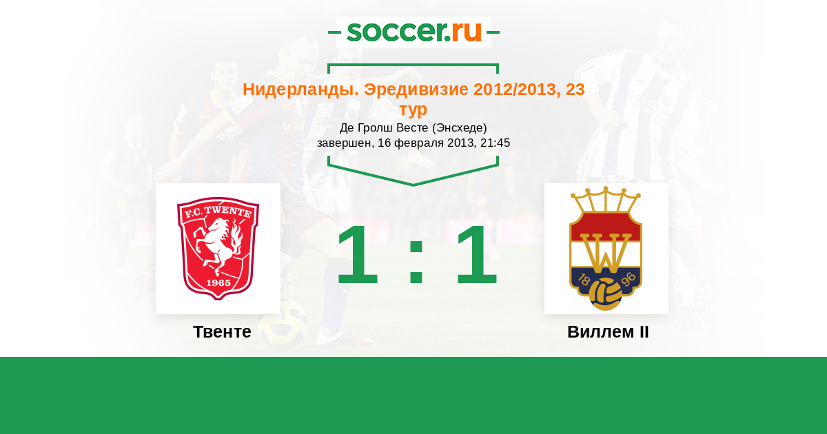 Нидерланды. Эредивизи 21.12.2014 Твенте Логотип футбольный клуб Твенте (Энсхеде) 3:2 Логотип футбольный клуб Виллем II (Тилбург) Виллем II