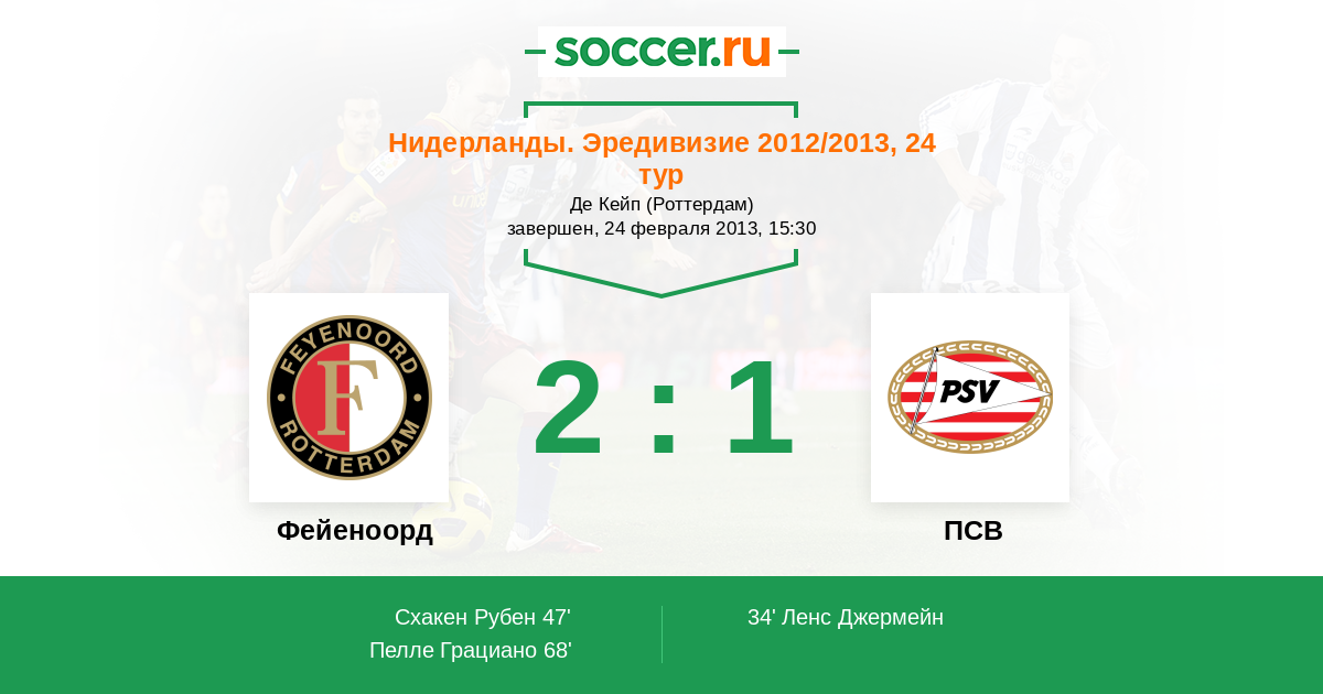 Протокол матча Фейеноорд против ПСВ