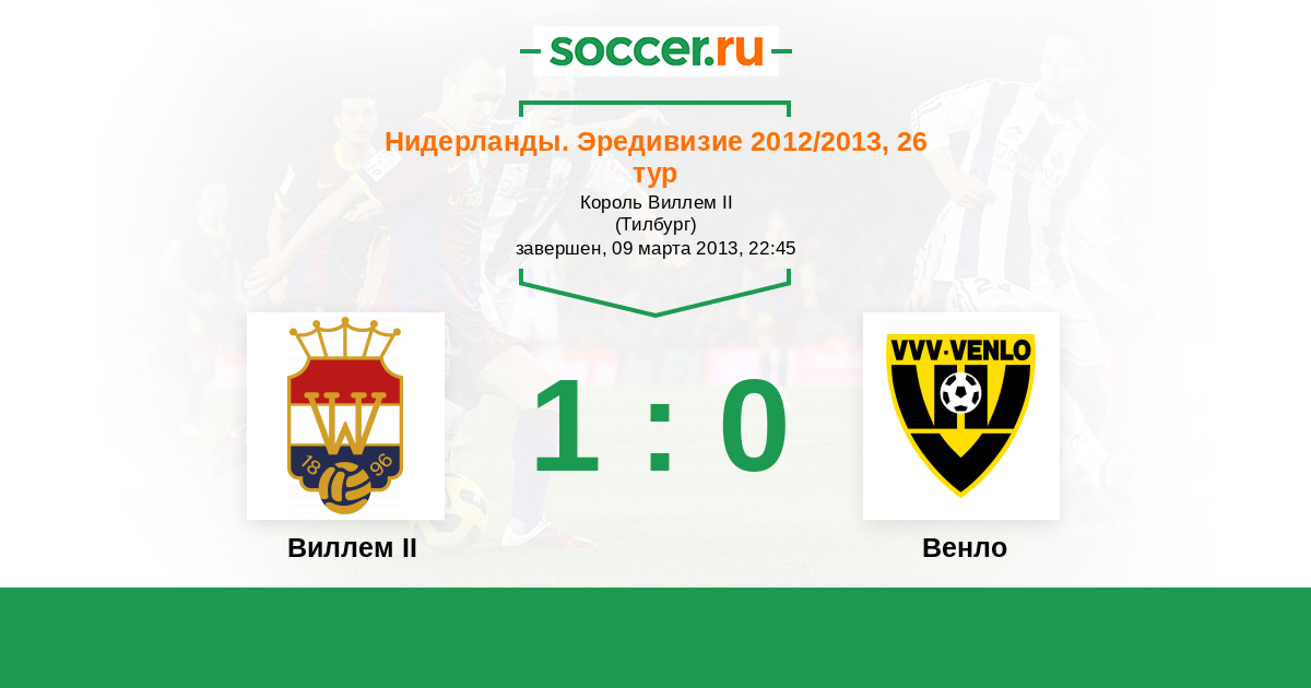Нидерланды. Эредивизи 27.02.2010 Виллем II Логотип футбольный клуб Виллем II (Тилбург) 2:1 Логотип футбольный клуб Венло Венло