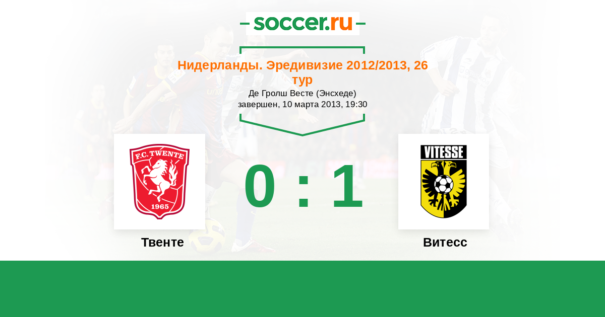 Нидерланды. Эредивизи 11.11.2012 Витесс Логотип футбольный клуб Витесс (Арнем) 0:0 Логотип футбольный клуб Твенте (Энсхеде) Твенте