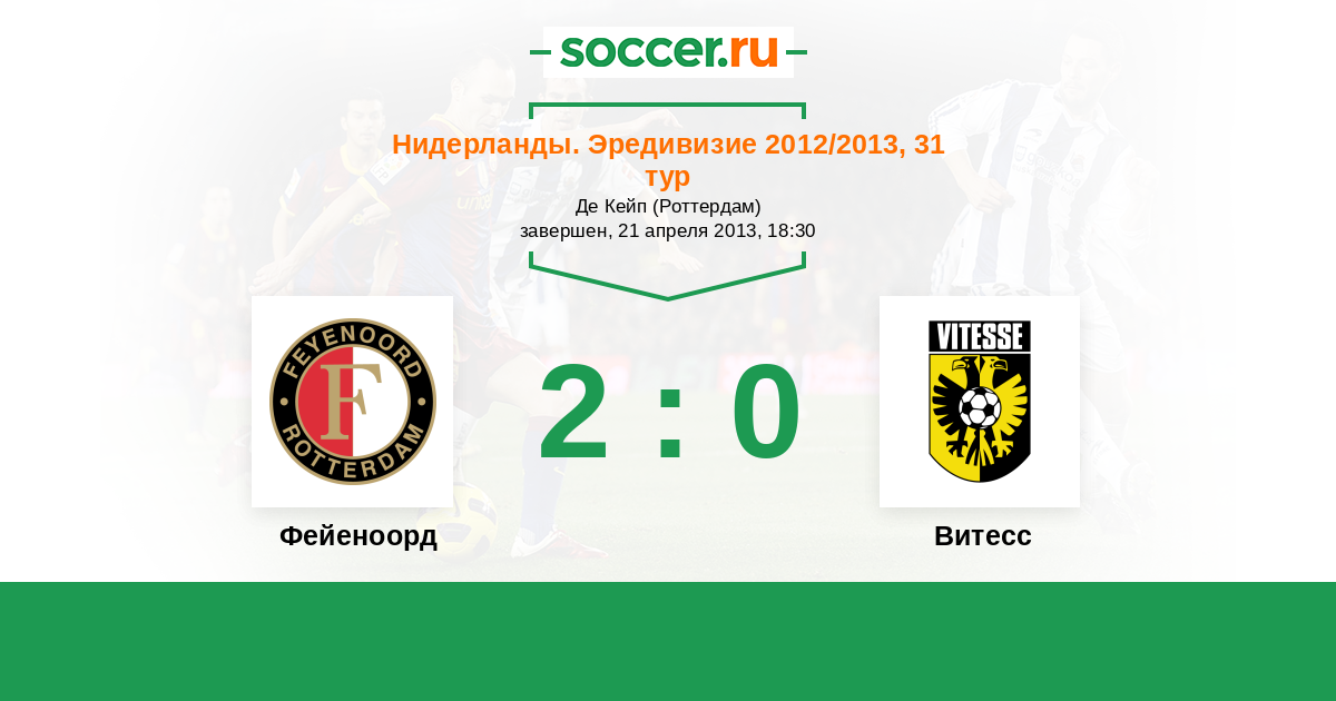 Нидерланды. Эредивизи 06.10.2013 Витесс Логотип футбольный клуб Витесс (Арнем) 1:2 Логотип футбольный клуб Фейеноорд (Роттердам) Фейеноорд