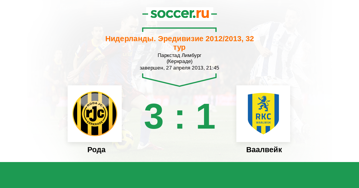 Нидерланды. Эредивизи 02.05.2012 Ваалвейк Логотип футбольный клуб Ваалвейк (Валвейк) 5:2 Логотип футбольный клуб Рода (Керкраде) Рода