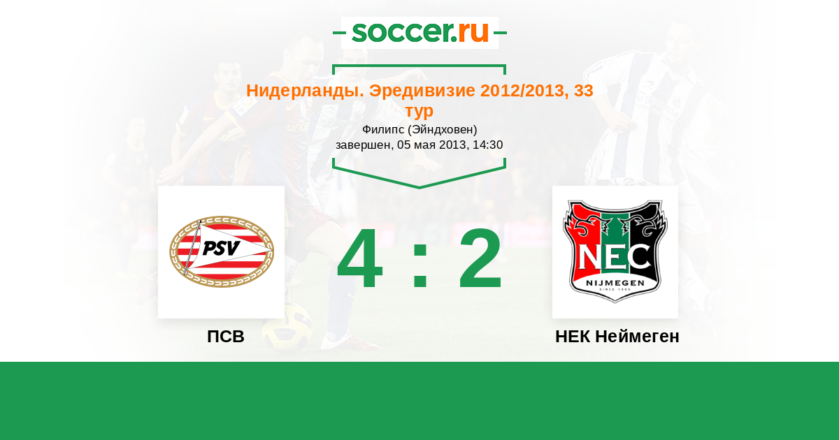 Нидерланды. Эредивизи 22.04.2012 ПСВ Логотип футбольный клуб ПСВ (Эйндховен) 2:1 Логотип футбольный клуб НЕК Неймеген НЕК Неймеген