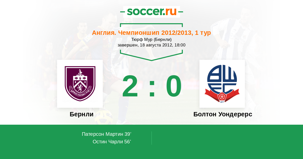 Протокол матча Бернли против Болтон Уондерерс