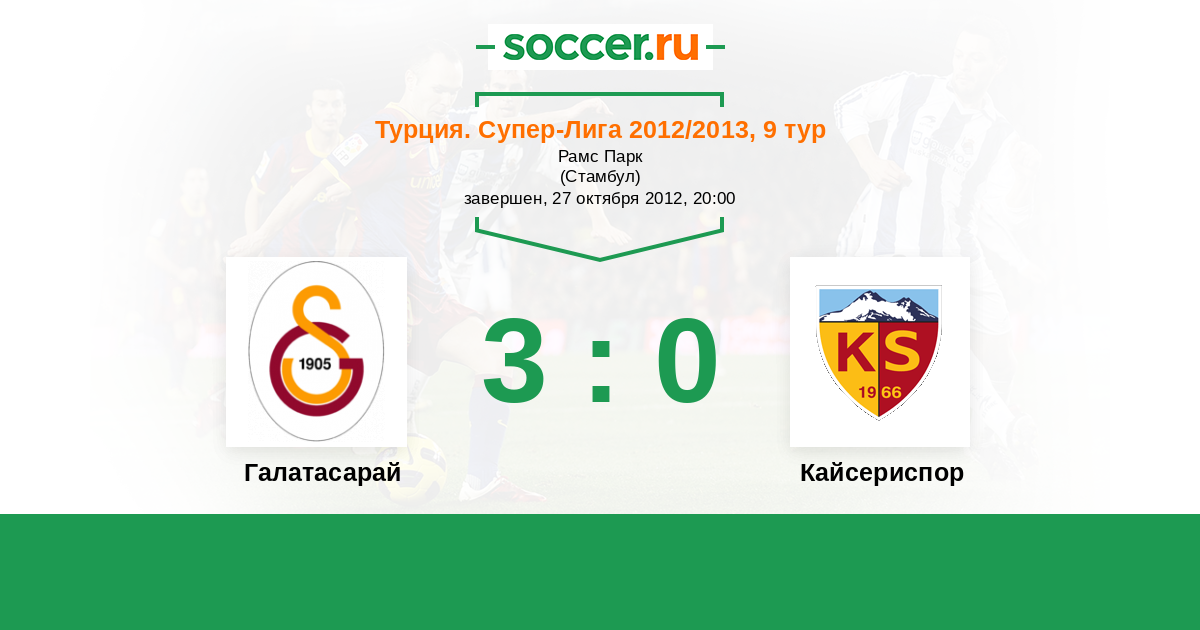 Турция. Суперлига 17.03.2013 Кайсериспор Логотип футбольный клуб Кайсериспор 1:3 Логотип футбольный клуб Галатасарай (Стамбул) Галатасарай