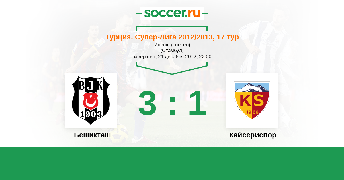 Турция. Суперлига 09.11.2013 Кайсериспор Логотип футбольный клуб Кайсериспор 0:3 Логотип футбольный клуб Бешикташ (Стамбул) Бешикташ