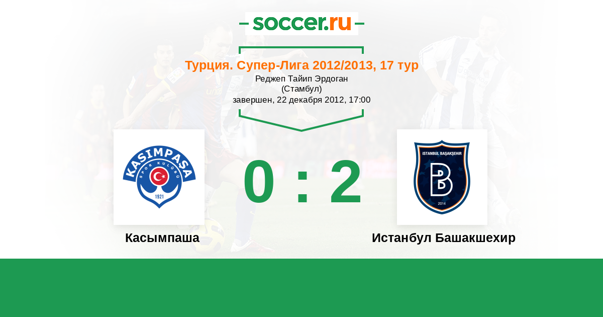 Турция. Кубок 26.01.2010 Касымпаша Логотип футбольный клуб Касымпаша (Стамбул) 0:2 Логотип футбольный клуб Истанбул Башакшехир (Стамбул) Истанбул Башакшехир