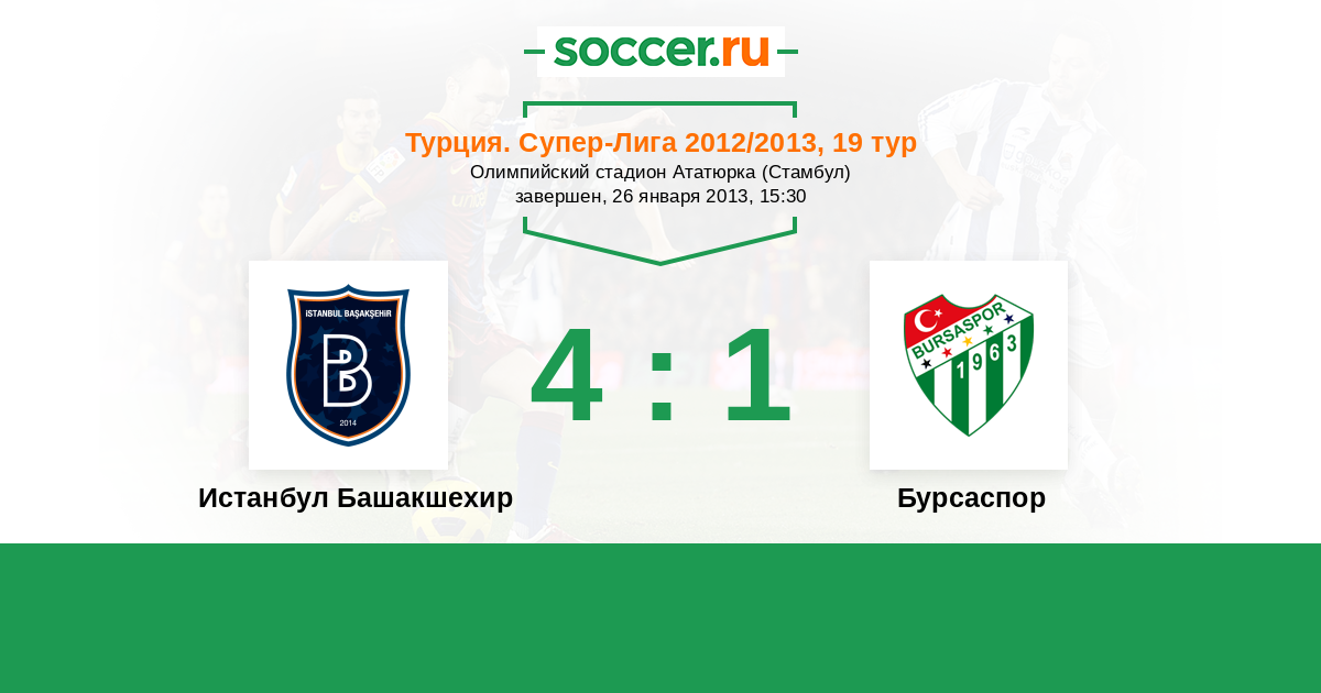 Турция. Суперлига 26.08.2012 Бурсаспор Логотип футбольный клуб Бурсаспор 0:1 Логотип футбольный клуб Истанбул Башакшехир (Стамбул) Истанбул Башакшехир