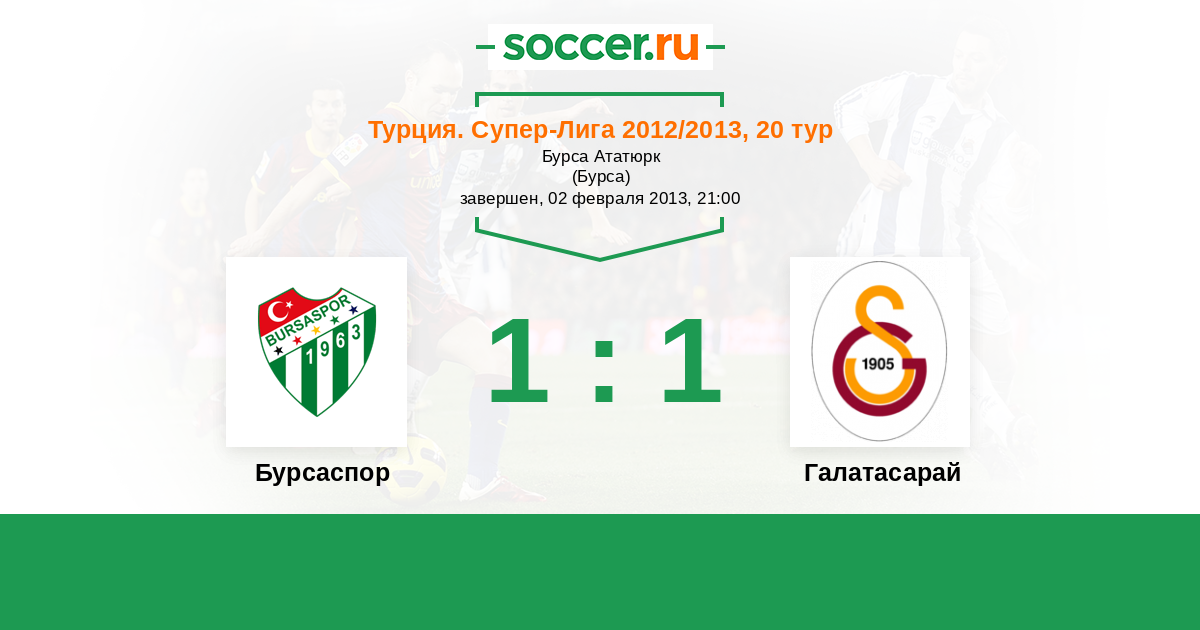 Турция. Суперлига 25.08.2013 Бурсаспор Логотип футбольный клуб Бурсаспор 1:1 Логотип футбольный клуб Галатасарай (Стамбул) Галатасарай