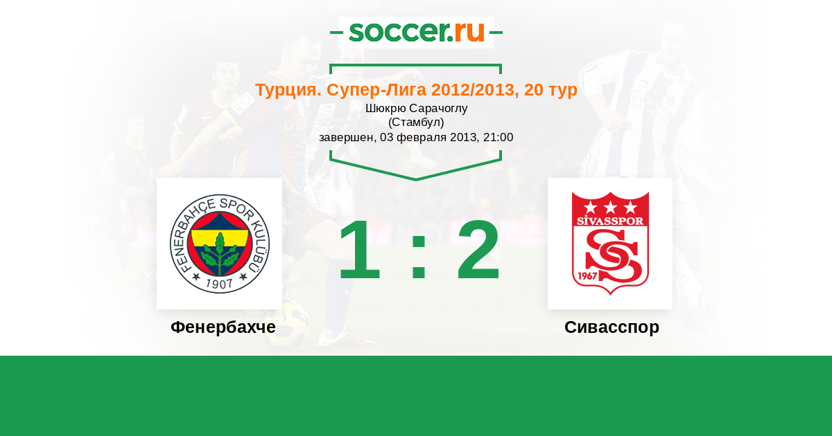 Турция. Суперлига 18.02.2012 Фенербахче Логотип футбольный клуб Фенербахче (Стамбул) 4:2 Логотип футбольный клуб Сивасспор Сивасспор