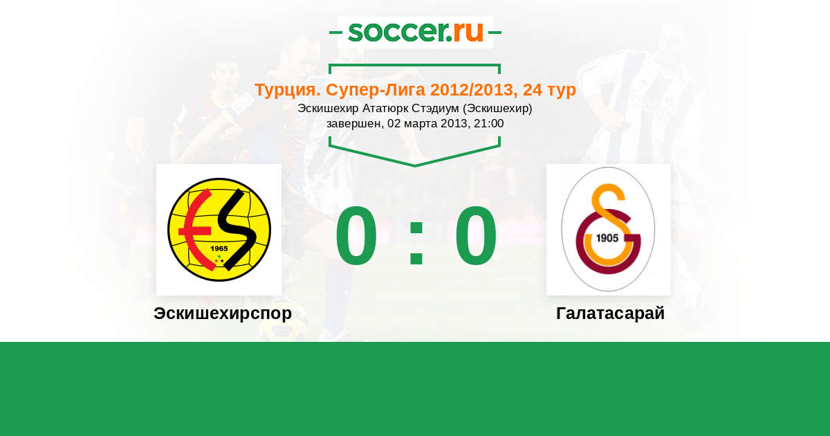 Турция. Суперлига 30.08.2013 Эскишехирспор Логотип футбольный клуб Эскишехирспор 0:0 Логотип футбольный клуб Галатасарай (Стамбул) Галатасарай