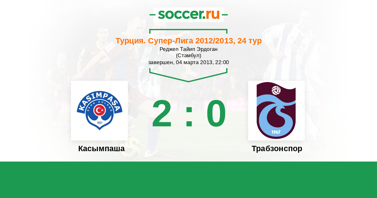 Турция. Суперлига 05.10.2012 Трабзонспор Логотип футбольный клуб Трабзонспор 1:0 Логотип футбольный клуб Касымпаша (Стамбул) Касымпаша