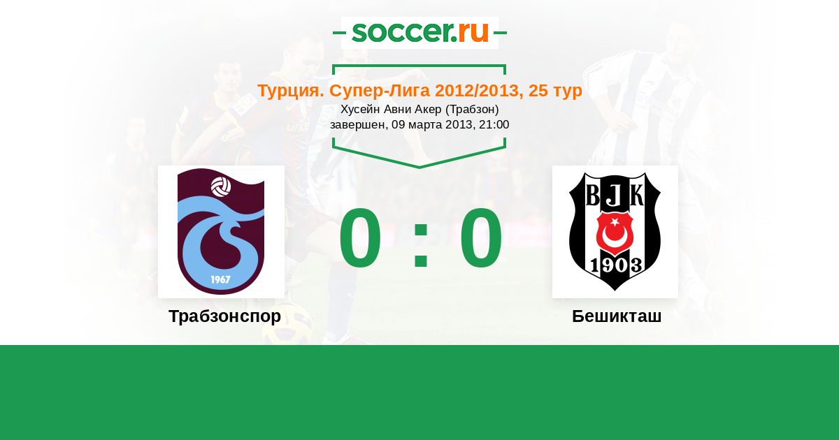 Турция. Суперлига 21.10.2012 Бешикташ Логотип футбольный клуб Бешикташ (Стамбул) 1:1 Логотип футбольный клуб Трабзонспор Трабзонспор