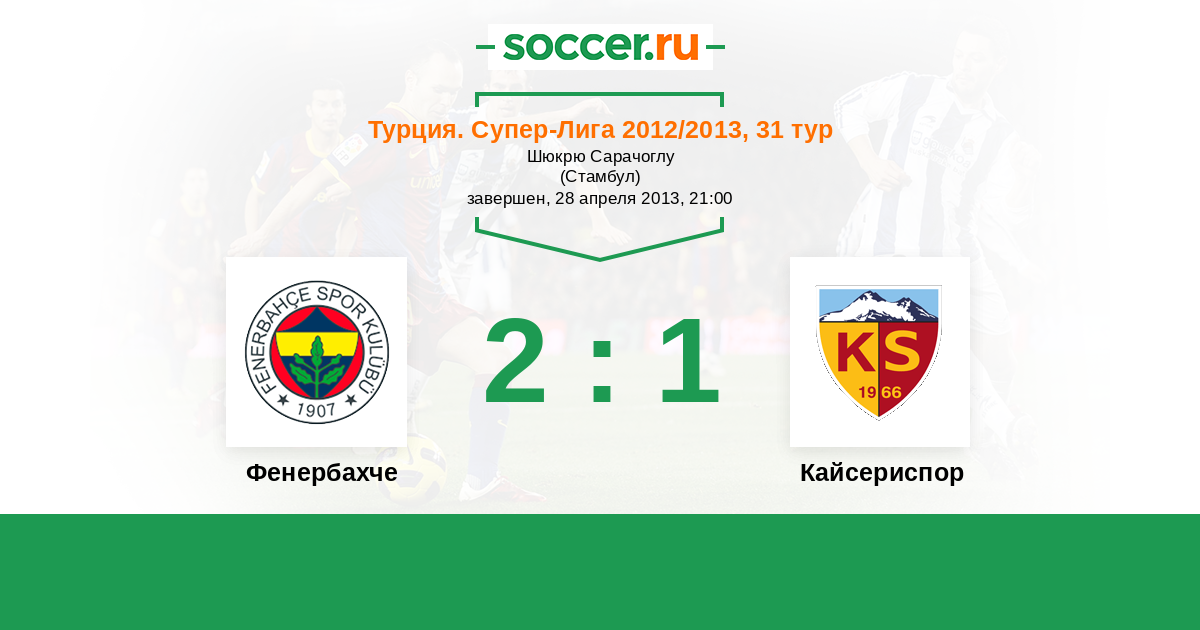 Турция. Суперлига 02.12.2012 Кайсериспор Логотип футбольный клуб Кайсериспор 1:1 Логотип футбольный клуб Фенербахче (Стамбул) Фенербахче