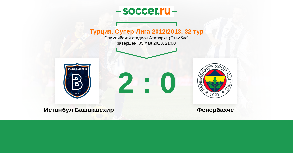 Турция. Суперлига 25.05.2015 Истанбул Башакшехир Логотип футбольный клуб Истанбул Башакшехир (Стамбул) 2:2 Логотип футбольный клуб Фенербахче (Стамбул) Фенербахче